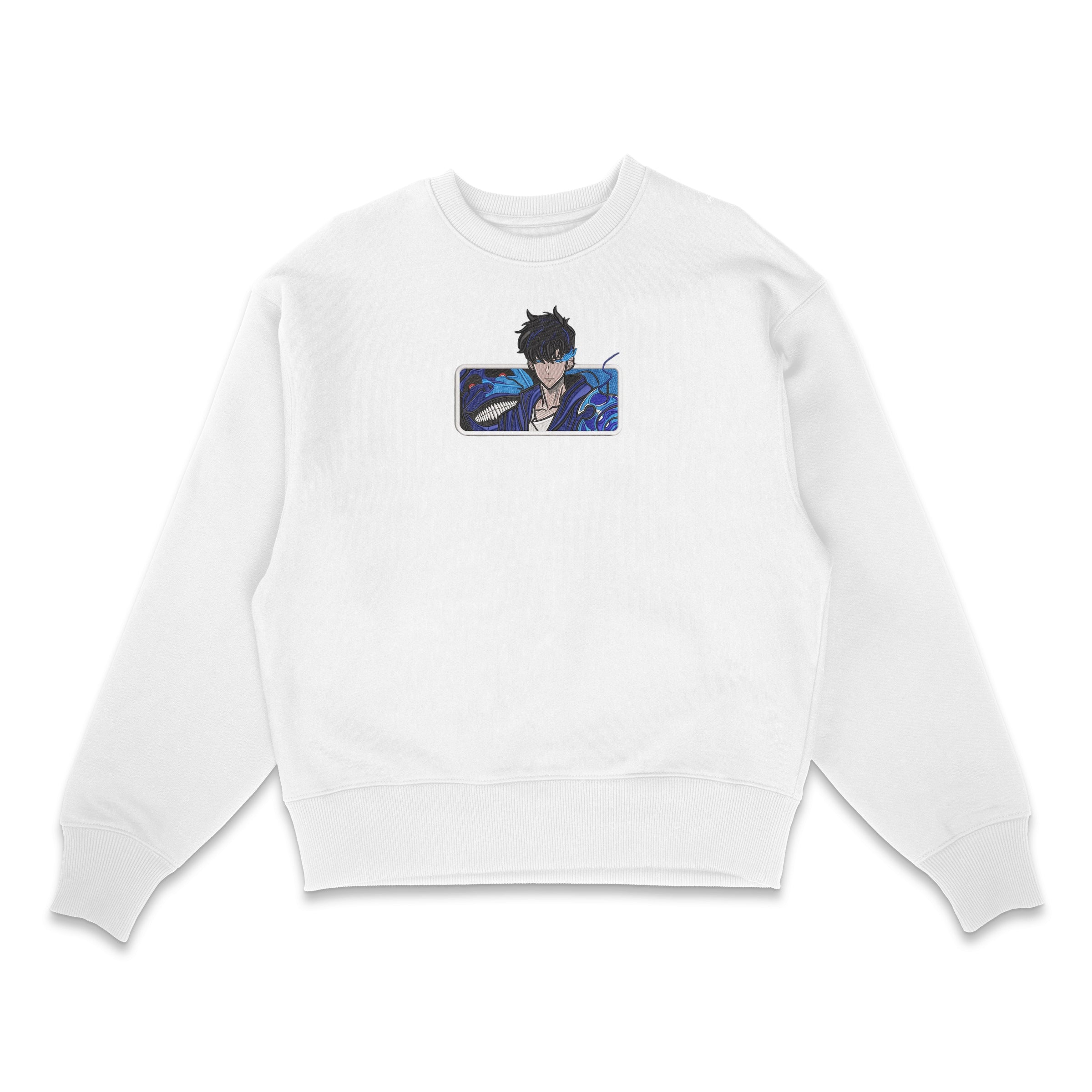 Ce sweat brodé met en avant Jung Jin-Woo et Statue of God, capturant son intensité et son aura mystérieuse. La broderie reflète la puissance du protagoniste de Solo Leveling.