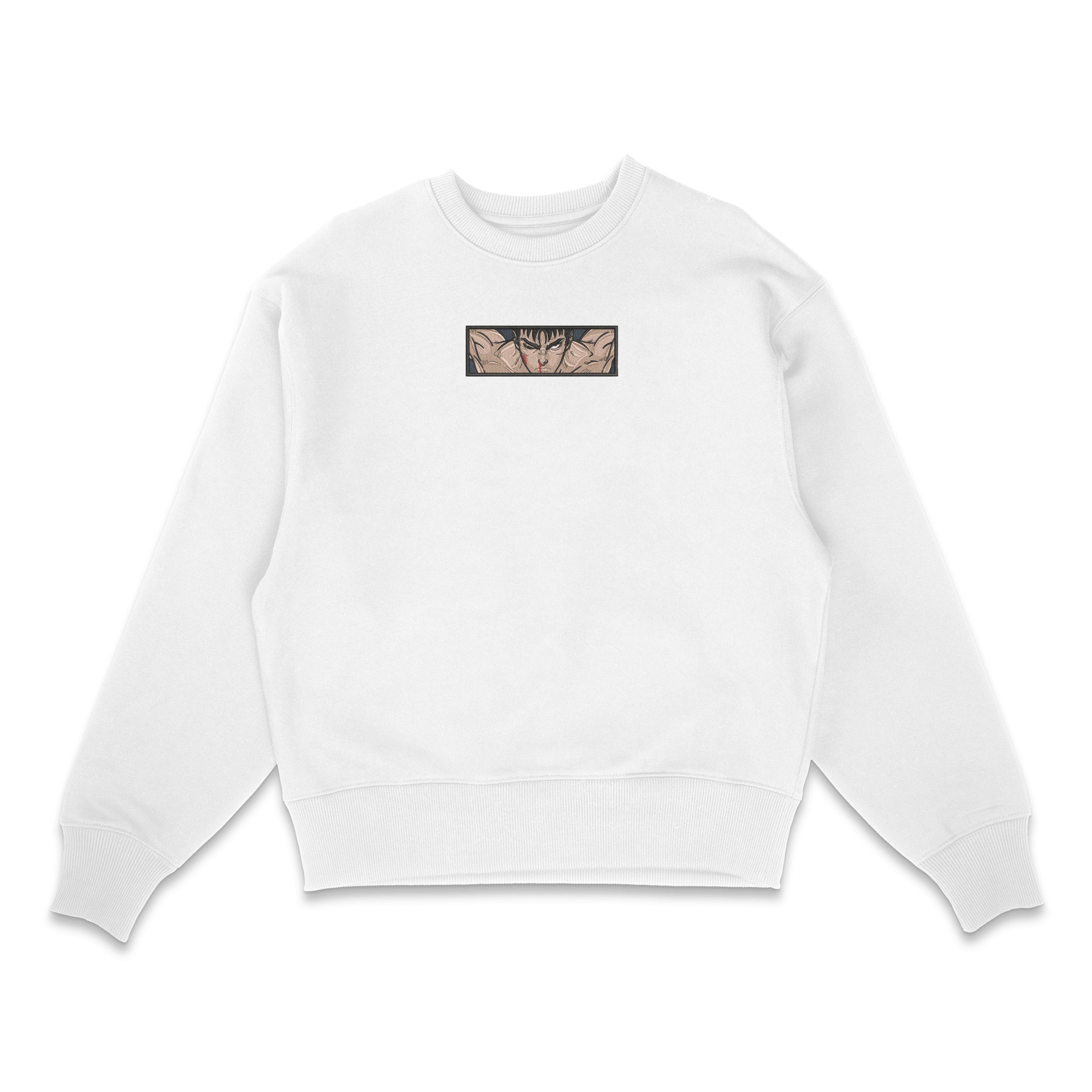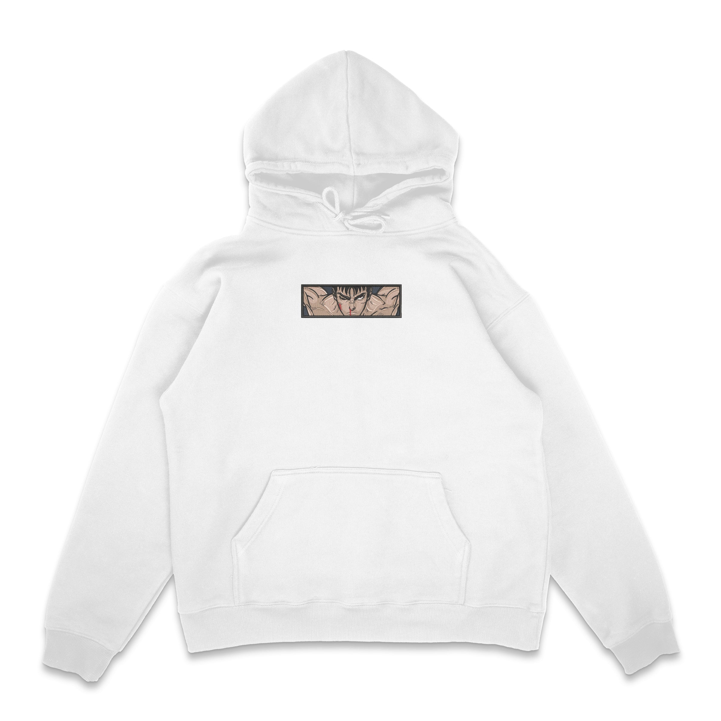 Ce sweat met en avant Guts, le protagoniste emblématique de Berserk, représenté blessé, mais avec ce regard déterminé qui symbolise toute sa force intérieure.